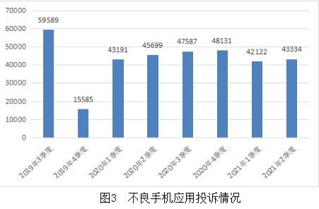 12321网络不良与垃圾信息举报受理中心(以下简称12321受理中心)共接到不良手机应用有效投诉43334件次,环比上升2.88%,同比下降2.48%。12321受理中心联合应用商店、安全检测厂商对其中存在问题的21款不良手机应用进行了下架处理。