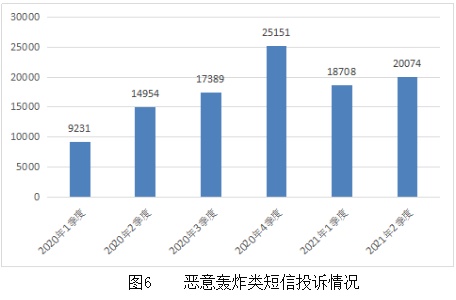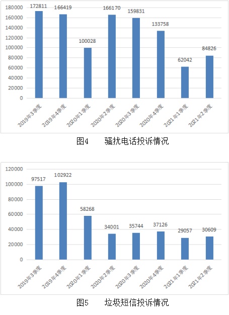 12321受理中心受理用户关于骚扰电话的投诉84826件,环比上升36.7%,同比下降49.0%。受理用户关于垃圾短信的投诉30609件,环比上升5.3%,同比下降10.0%。工业和信息化部已督促相关电信企业对上述被投诉号码进行了核查处置。