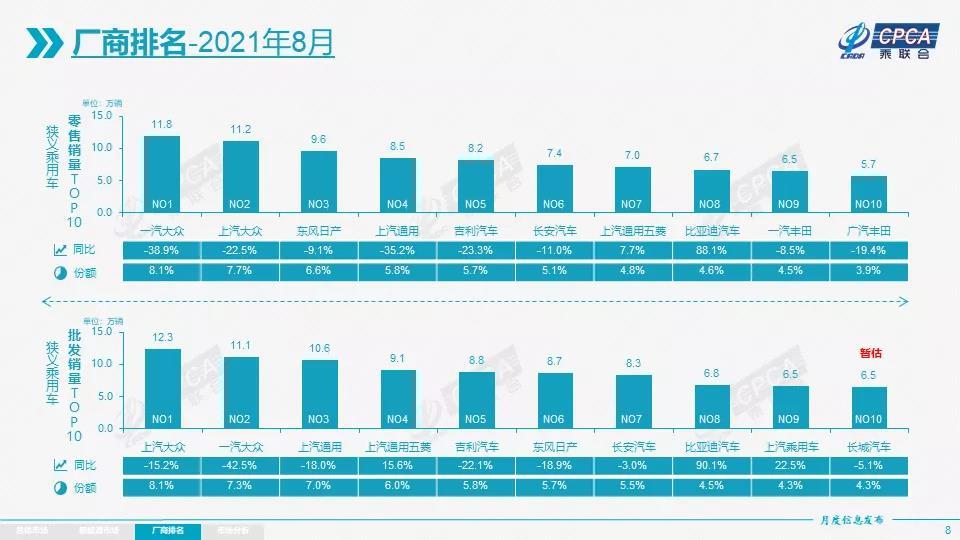 6)普混:8月普通混合动力乘用车批发3.89万辆,同比去年8月增长37%,环比7月下滑14%。8月日系总体受到芯片短缺影响表现较大,产销锐减。