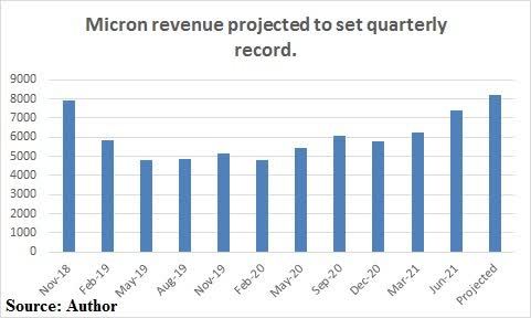 若美光科技在四季度如该公司所预期的那样,实现创纪录的82亿美元营收和47%的利润率,再加上该公司承诺更多的股票回购,该股未来12个月的每股收益将达到10-12美元。