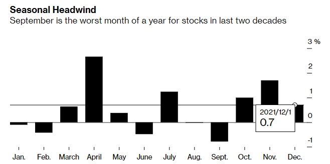 虽然没有人预测会出现大幅抛售,但是夏季的股票狂潮已经让投资者过度投机,且极易受到坏消息的影响。在标普500指数连续7个月上涨之后,许多人认为,季节性疲软的9月份是股市回调的成熟时机。