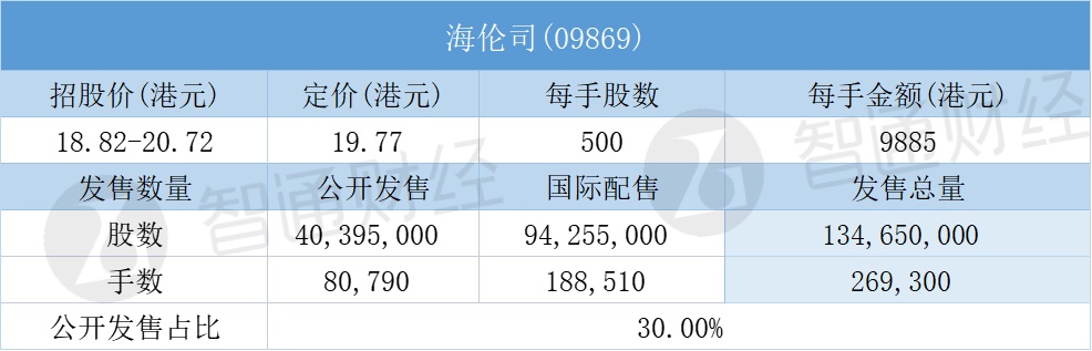 智通财经APP获悉,9月9日,海伦司(09869)配售结束。配售招股价18.82-20.72港元,最终定价19.77港元,每手9885港元。