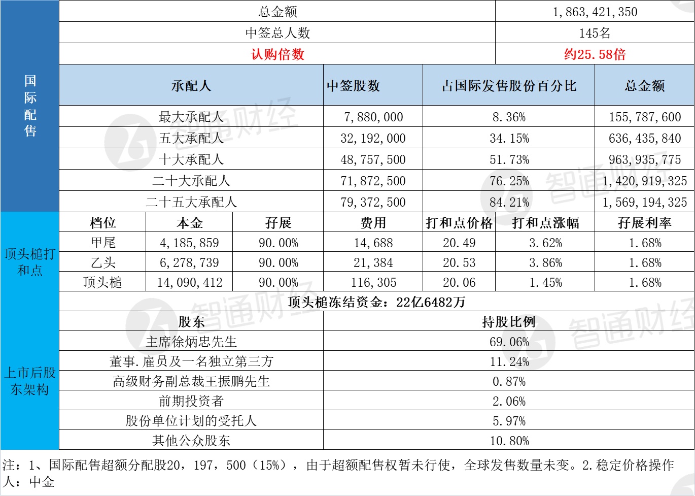 国际配售申购人数未披露,认购倍数约25.58倍。