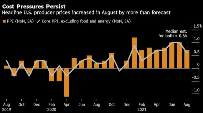美国8月核心PPI同比上涨6.7%,前值为6.2%,预期6.6%。美国8月核心PPI环比上涨0.6%,前值0.9%,预期0.6%。