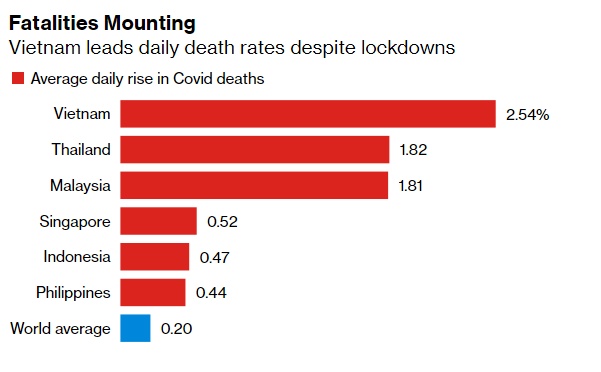 就对全球供应链的影响方面,越南的风险最大。在越南,越来越严格的封锁令使制造商和出口商付出了高昂的代价,却未能阻止delta病毒的蔓延。