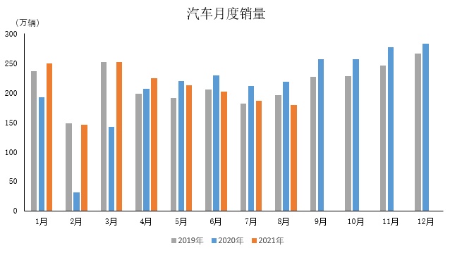 2021年8月,汽车产销分别达到172.5万辆和179.9万辆,环比下降7.4%和3.5%,同比下降18.7%和17.8%。2021年1-8月,汽车产销1616.6万辆和1655.6万辆,同比增长11.9%和13.7%,增速比1-7月继续回落。