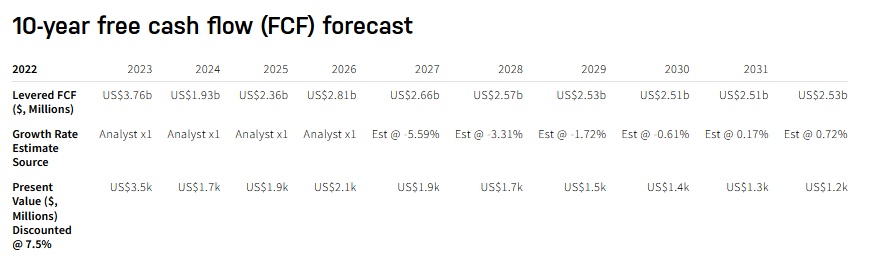 分析人士将通过现金流折现估值模型(DCF)来进行分析。此次模型考虑了增长的两个阶段,分别是第一个“较高的增长期”和第二个“稳定增长期”。