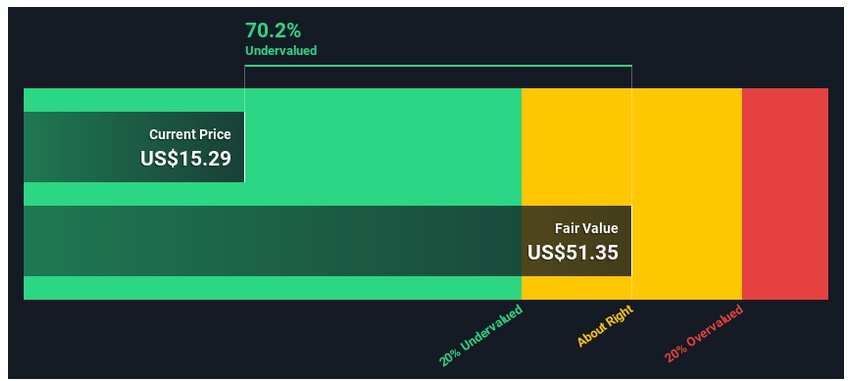 两项数据相加得到总股权价值为410亿美元,将其除以流通股数量之后,该股的公允价值为51.35美元;与目前15.3美元的股价相比,该股可能被低估了70%以上。