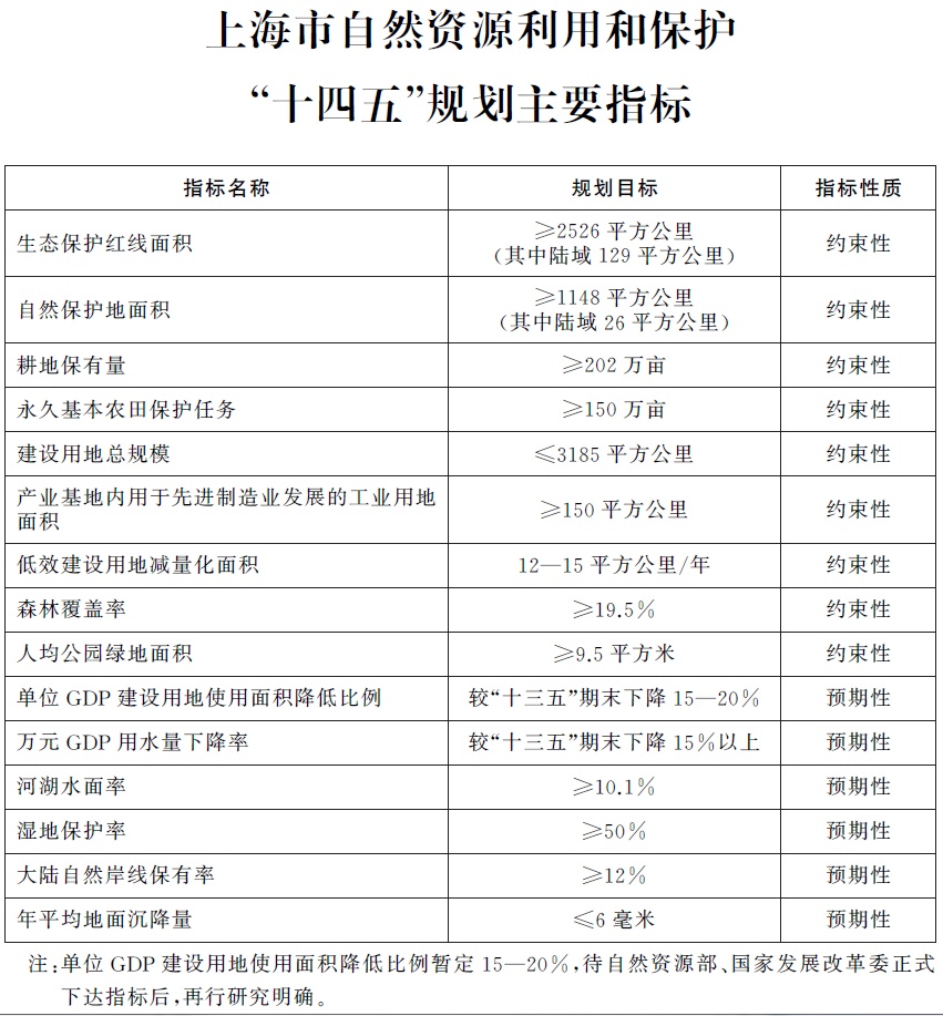 上海市自然资源利用和保护“十四五”规划