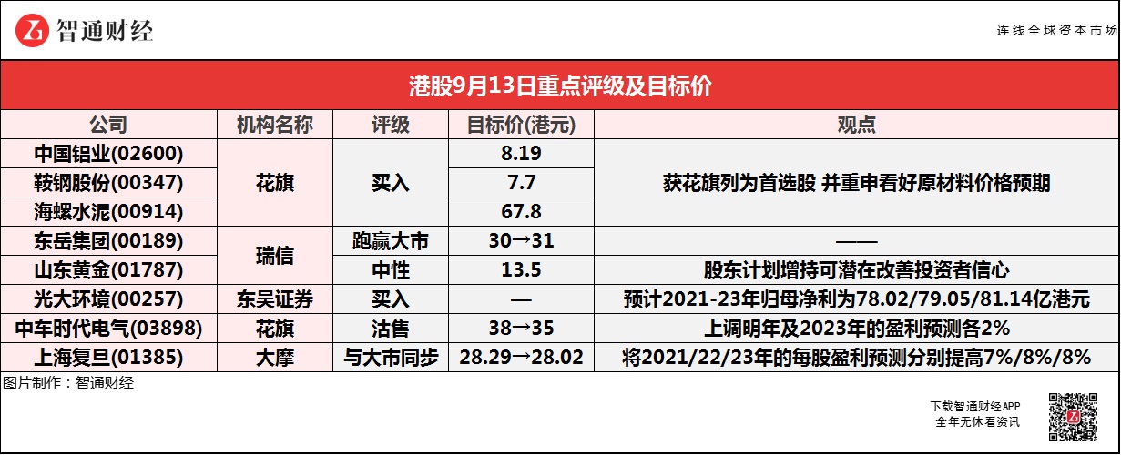 花旗称,重申看好原材料价格的预期,首选海螺水泥(00914)、中国铝业(02600)、鞍钢股份(00347)等。