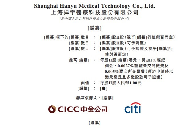 智通财经APP获悉,据港交所9月13日披露,上海捍宇医疗科技股份有限公司(Shanghai Hanyu Medical Technology Co., Ltd.)通过港交所上市聆讯,中金公司及花旗为其联席保荐人。