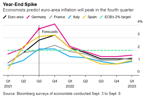数据显示,德国8月消费者价格指数上涨3.4%,为2008年以来的最高水平,主要受销售税削减政策逆转和能源成本上涨等特殊因素所致。德国央行表示,通胀可能会在今年晚些时候达到5%,然后在2022年再次放缓。另外,欧洲央行也预测,明年整个欧元区的利率将会放缓。