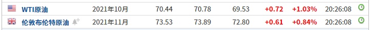 截至发稿,WTI原油涨1.03%,报70.44美元/桶。布伦特原油涨0.84%,报73.53美元/桶。