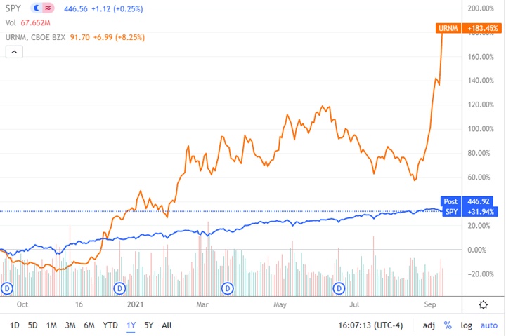 铀的需求前景正在改善,人们乐观地认为,核能将在全球推动清洁能源的未来中发挥作用。随着Sprott Physical Uranium Trust基金的启动,铀的期货价格在8月份从今年低点上涨了40%。此外,对铀公司(从事铀矿开采、勘探、开发、生产或拥有铀矿的公司)的狂热买盘将这些公司的股票推高至10年来的最高水平。