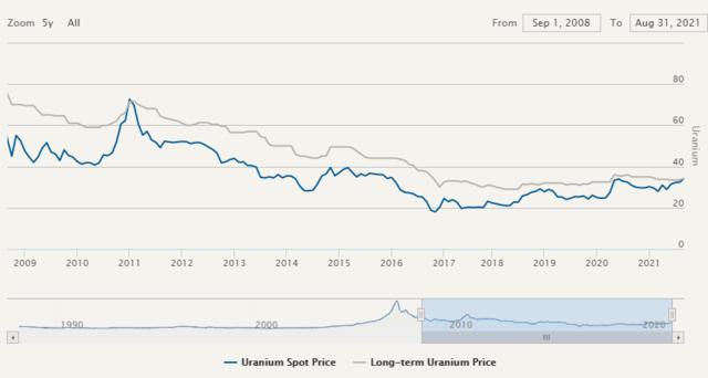 目前铜价已保持在历史高位,镍达到了2014年以来的最高水平,并推高了钢铁价格;此外,铝土矿受几内亚的政变,铝价格升至每吨3000美元的13年高点。与此同时,用于核电的重要燃料铀,其价格也从长达十年之久的低迷中迎来反转,目前铀价已升至2014年以来的最高水平。