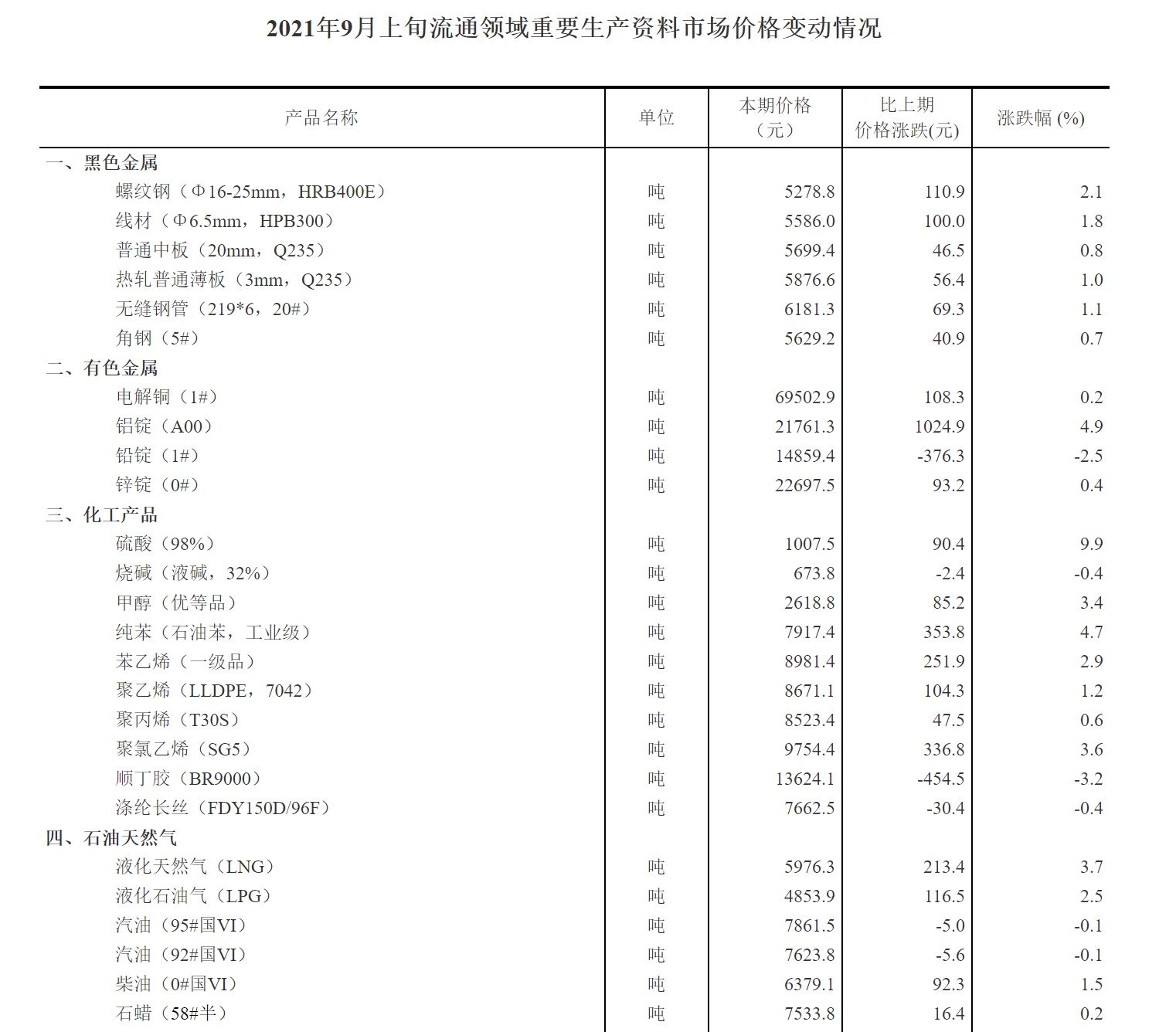 智通财经APP获悉,9月14日,国家统计局据对全国流通领域9大类50种重要生产资料市场价格的监测显示,2021年9月上旬与8月下旬相比,34种产品价格上涨,11种下降,5种持平。
