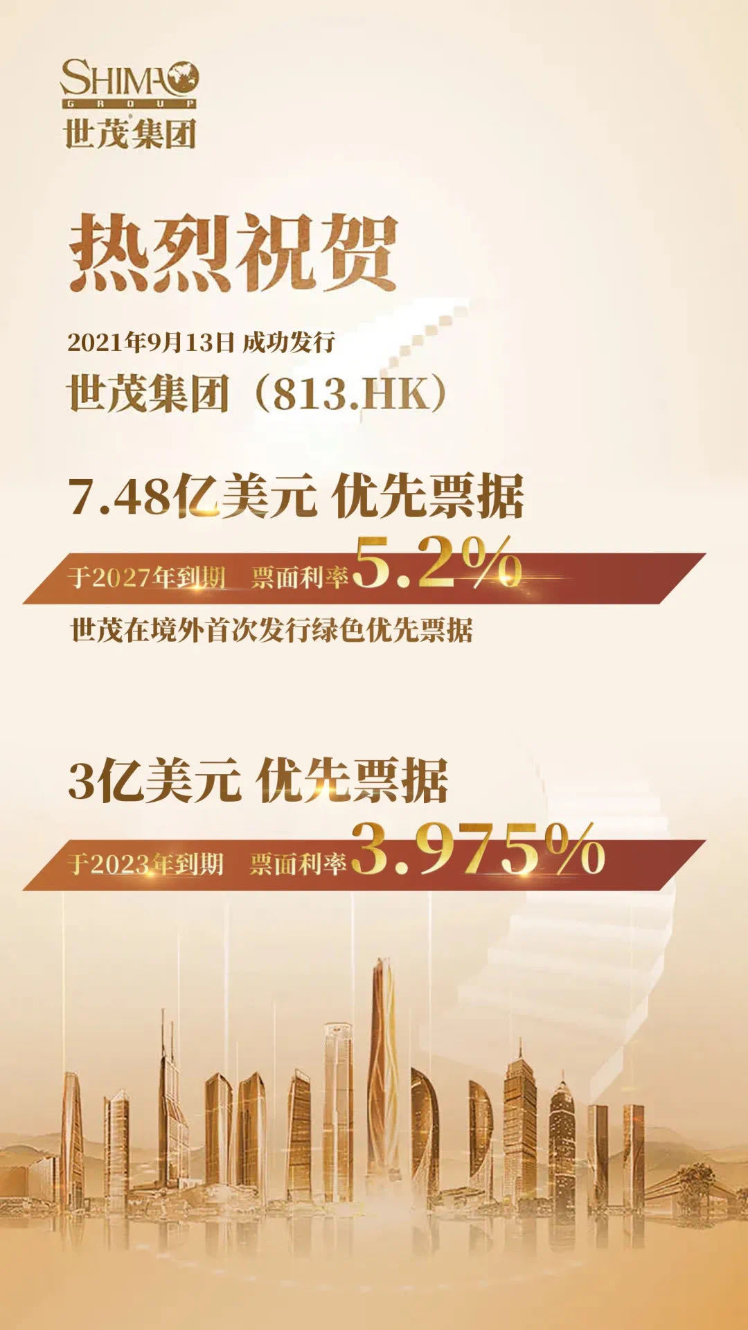 智通财经APP获悉,9月14日,世茂集团(00813)发布公告称,发行3亿美元于2023年到期3.975%优先票据及7.48亿美元于2027年到期5.20%优先票据。汇丰、J.P. Morgan及摩根士丹利为票据发行之联席全球协调人,其连同交银国际、中国国际金融、富强证券有限公司、SMBC Nikko、渣打银行及大华银行为联席账簿管理人及联席牵头经办人。