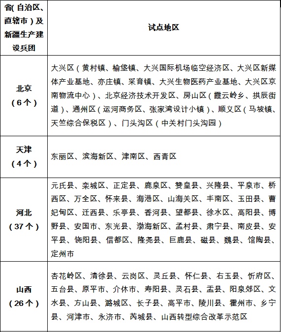 整县(市、区)屋顶分布式光伏开发试点名单
