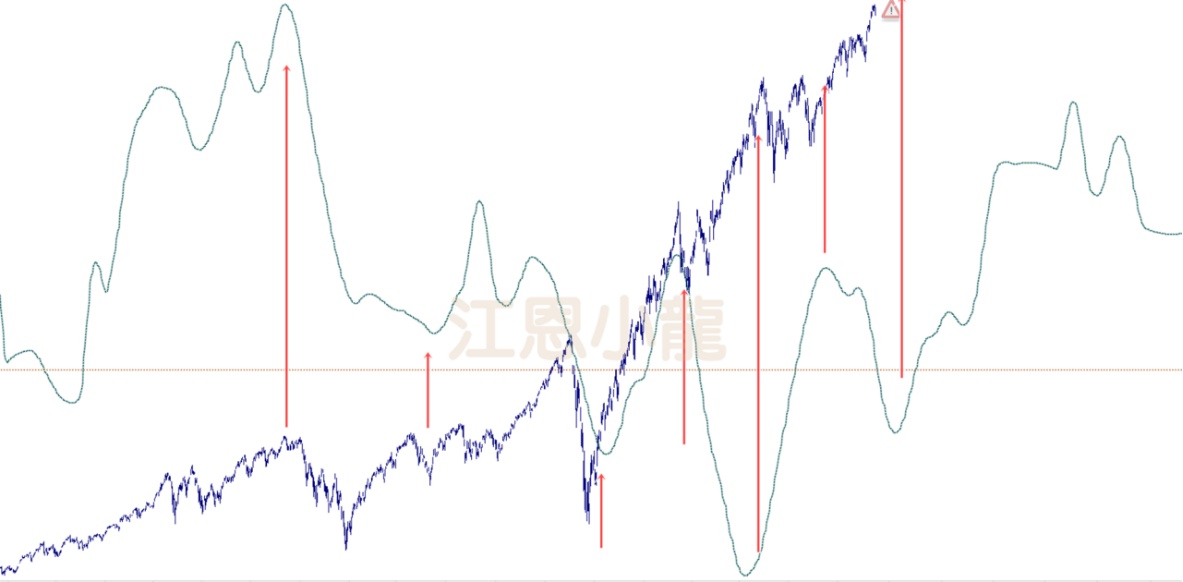 我们汇入了二十年的数据,可以见到纳指在极度乐观的情况。