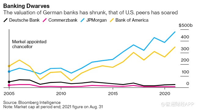 虽然华尔街的银行也不得不应对更严格、成本更高的监管,但在美国在金融危机中强制对主要银行进行资本重组后,摩根大通(JPM.US)和高盛集团(GS.US)等公司从欧洲的投资银行那里赢得了市场份额。在默克尔的领导下,德国银行花了更长的时间来建立他们的金融储备,而且他们无法在国家协议之外以一种有意义的方式进行整合。