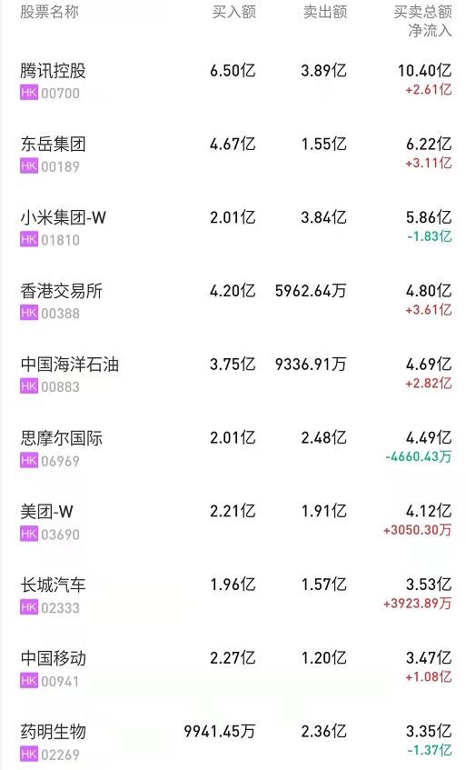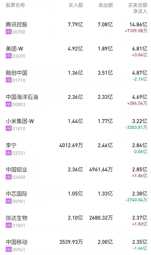 此外,美团-W(03690)、腾讯(00700)、信达生物(01801)分别获净买入3.34亿、3.32亿、1.83亿港元。而药明生物(02269)、中移动(00941)、中芯国际(00981)分别遭净卖出1.36亿、5661万、2740万港元。
