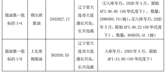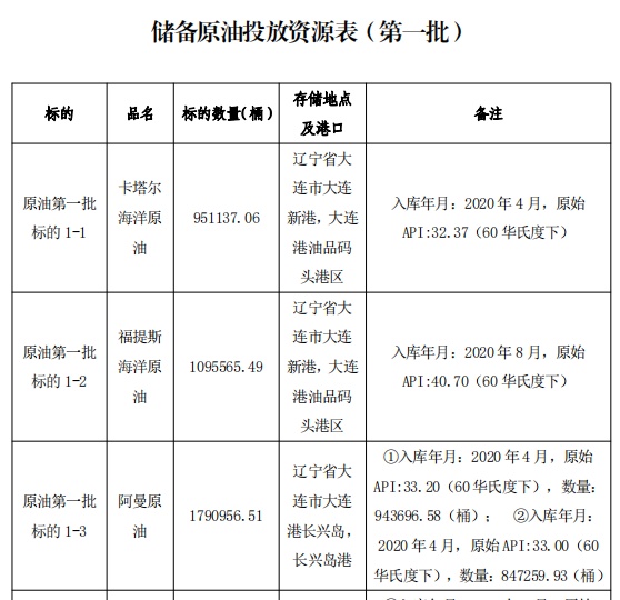 以下为储备原油投放资源表(第一批):