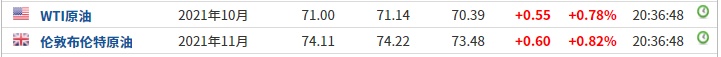 截至发稿,WTI原油涨0.78%,报71.00美元/桶。布伦特原油涨0.82%,报74.11美元/桶。