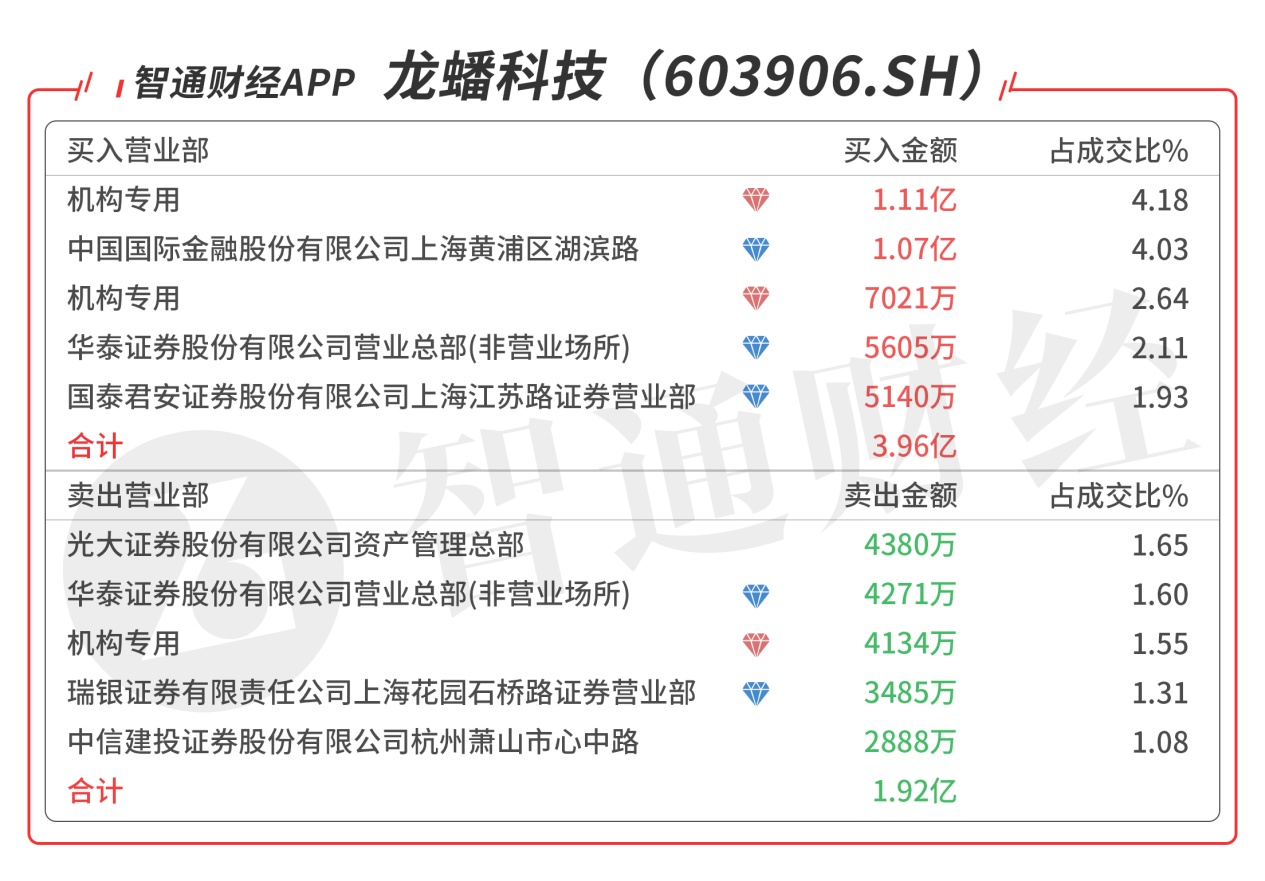 龙蟠科技(603906.SH):龙虎榜阵容强大,机构净买入1.81亿元,买四是知名游资的席位买入5605万元,买五是知名游资章盟主的席位买入5140万元。当日净买入2.05亿元,该股今日突破近两个月的箱体,强势特征明显。