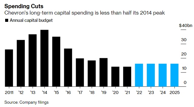 尽管雪佛龙的财务状况在同行中最为强劲,这家西方第二大石油巨头不太可能逆势而行,转而追求新产量。去年,该公司削减了近三分之一的资本支出,并不同寻常地承诺将一直维持在低水平直至2025年。本周早些时候,美国政府宣布将增加能源转型技术方面的支出,但这只是扭转了这些削减的一部分。