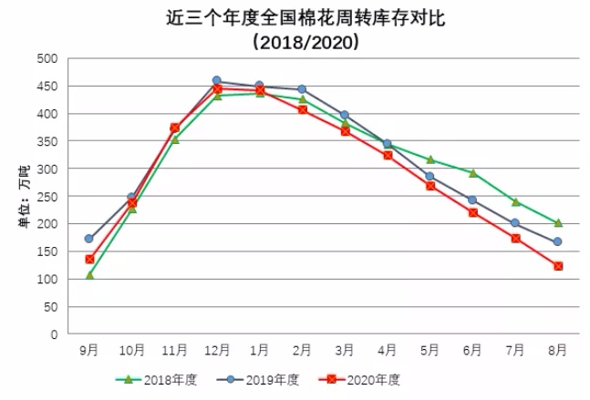 此外,截至8月底,新疆43家仓库商品棉周转库存为70.44万吨,环比下降42.27万吨,降幅环比小幅扩大。同比下降21.57万吨。