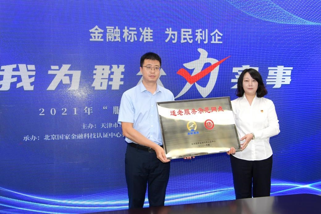 随后,北京国家金融科技认证中心向天津银行第三中心支行营业部现场授牌。天津银行第三中心支行营业部成为全国城商行首家同时也是天津市首家金融标准认证“适老服务示范网点”。