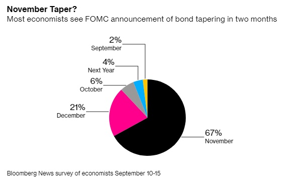 智通财经APP获悉,根据国外金融机构对经济学家的咨询与访问结果,美联储可能会在下周的会议上暗示将逐渐缩减资产购买规模(Taper),并在11月正式宣布这一决定。