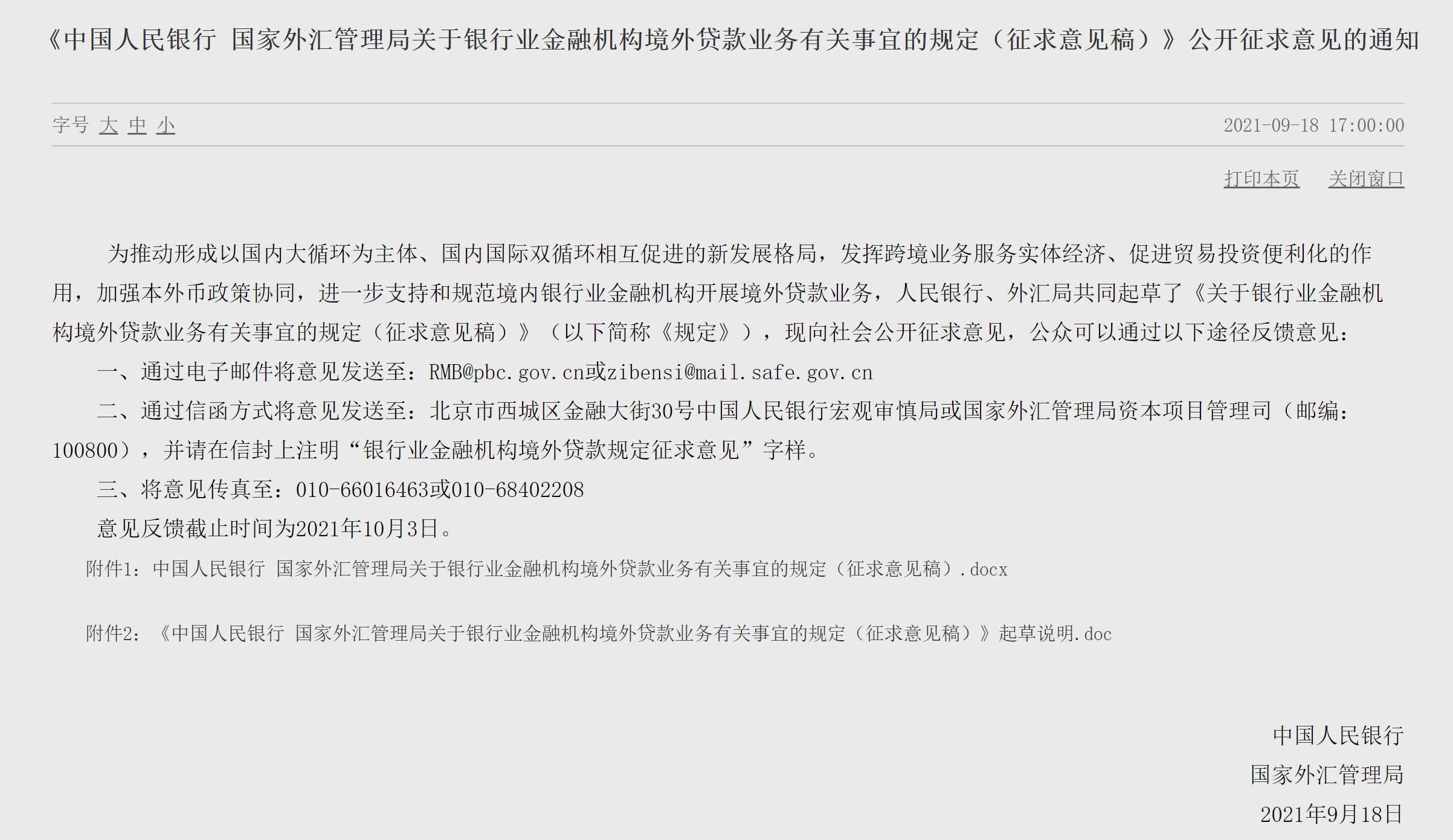 智通财经APP获悉,中国人民银行、外汇局就《关于银行业金融机构境外贷款业务有关事宜的规定(征求意见稿)》公开征求意见。《规定》旨在建立统一的本外币境外贷款政策框架,支持和规范境内银行开展境外贷款业务,以更好满足境外企业资金需求,切实服务实体经济、促进贸易投资便利化。同时,对境内银行境外贷款相关的跨境资金流动实施宏观审慎管理,切实做好风险防范。《规定》指出,对境内银行境外贷款相关的跨境资金流动实施宏观审慎管理。在跨境资金流动管理上,《规定》结合各行一级资本净额及境外贷款业务开展情况,设置了境外贷款余额上限,通过调整境外贷款杠杆率和宏观审慎调节参数实现跨境资金流动逆周期管理。对一级资本净额(外国银行境内分行按营运资金计)在20亿元以下的境内银行,额外给予20亿元的初始额度。