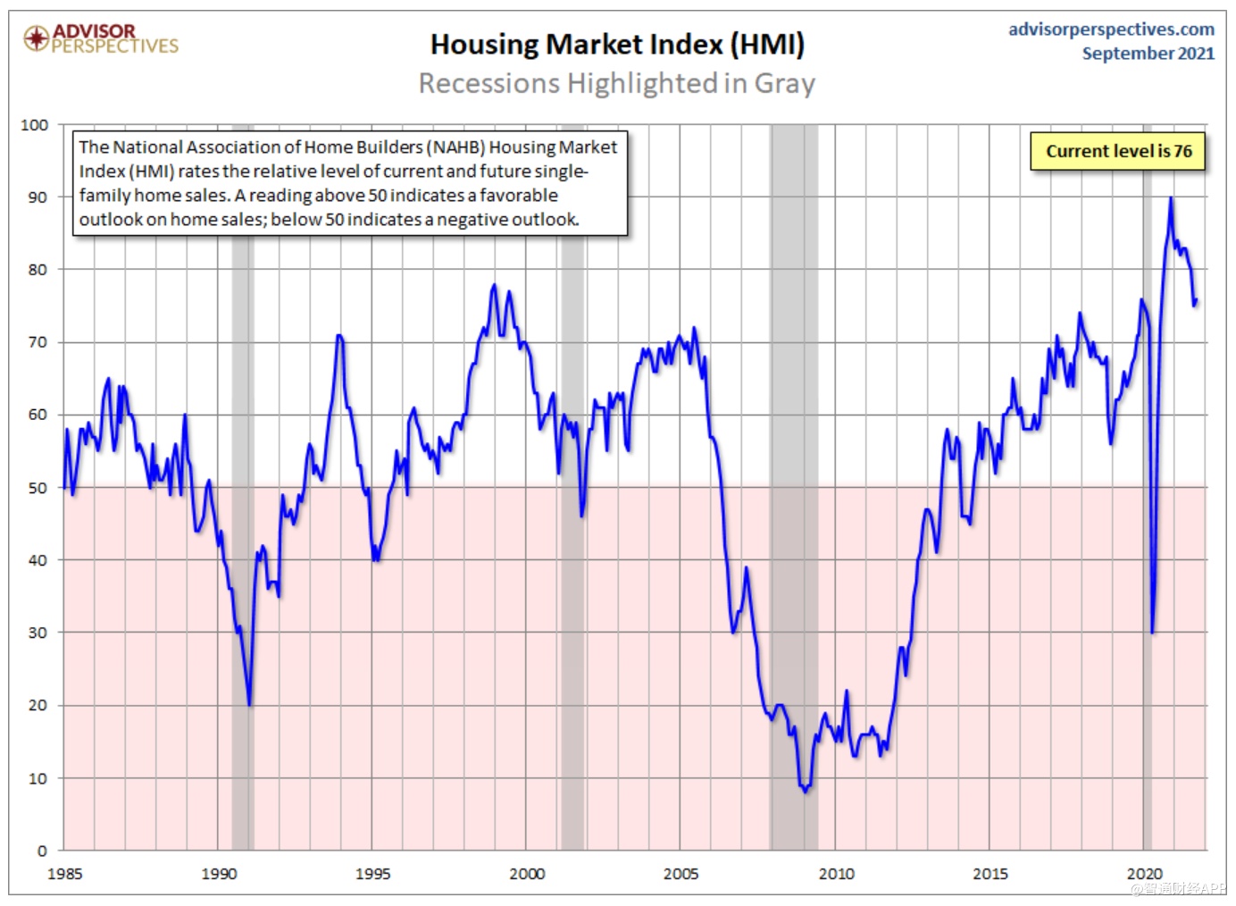 NAHB房产市场指数说明了住宅房屋销售和未来住宅建筑预测,它是通过对约900家住宅建筑商进行调查而获得的,高出50的指标表示美国房地产市场前景看好。