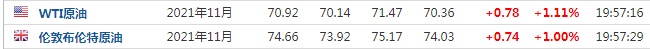 截至发稿,WTI原油涨1.11%,报70.92美元/桶。布伦特原油涨1%,报74.66美元/桶。