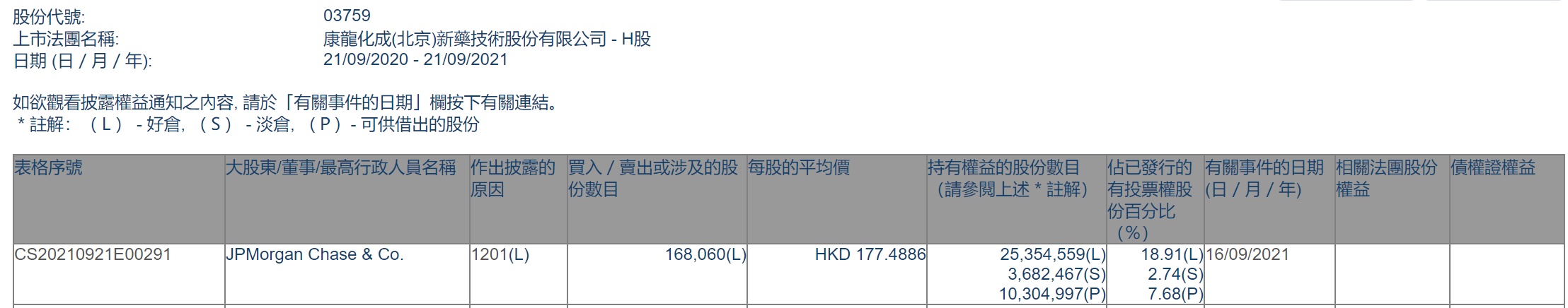 智通财经APP获悉,香港联交所最新资料显示,9月16日,小摩减持康龙化成(03759)16.806万股,每股作价177.4886港元,总金额约为2982.87万港元。减持后最新持股数目约为2535.46万股,最新好仓持股比例为18.91%。