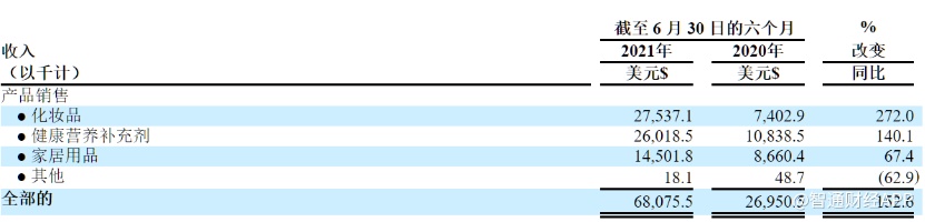智通财经APP了解到,今年上半年,聚好商城总收入达到6810万美元,较2020年上半年的2700万美元增长152.6%。其中化妆品和健康营养补品增速继续领跑,分部业绩分别增长272.0%和140.1%。