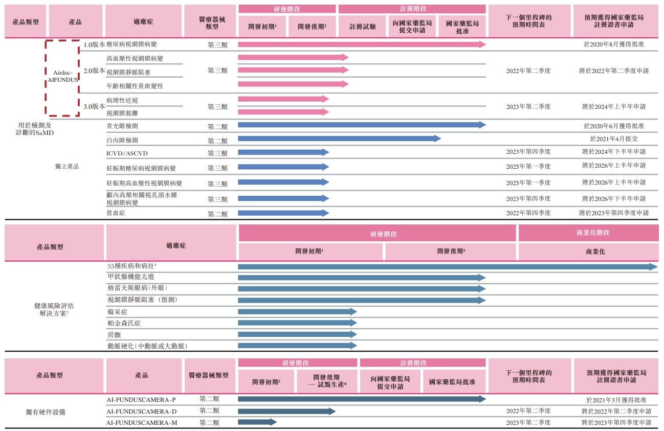 旗下产品Airdoc-AIFUNDUS(1.0)是一款人工智能医疗器械软件(SaMD),获批用于辅助诊断糖尿病视网膜病变,为同类产品中首个获得国家药监局第三类医疗器械证书的医疗器械。
