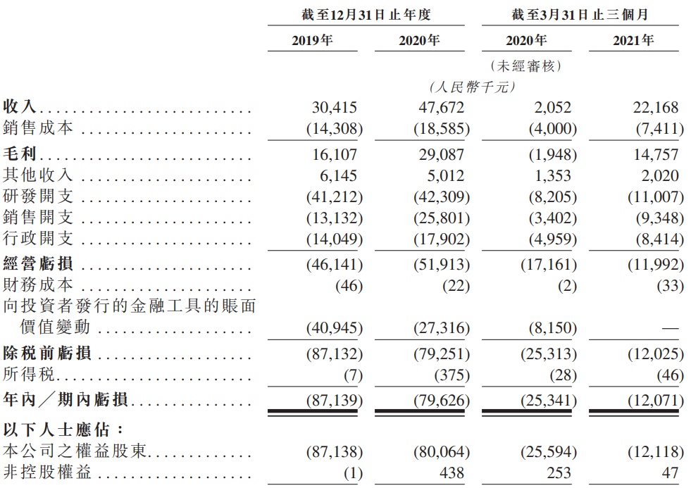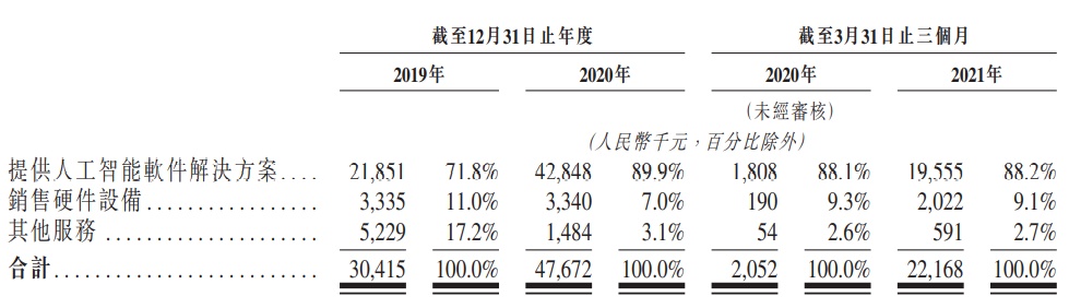 财务方面,2019-2020财政年度,该公司收入分别为3041.5万元(人民币,下同)和4767.2万元;其中,提供人工智能软件解决方案产生的收入分别为2185.1万元和4284.8万元。