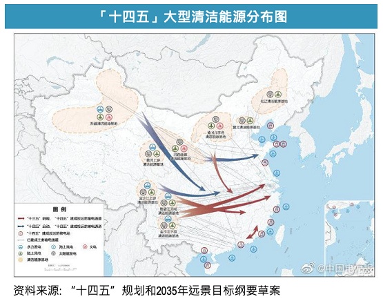 “十四五”同样也提出要加速发展非化石能源,大力发展光伏、风能发点。近段时间此类概念也是大受追捧,相关板块也出现了大幅增长。“十四五”期间,新增的跨区输电通道将以清洁能源为主,计划建设7回特高压直流,预计总投资达到2900亿元。今年国家电网特高压投资额约为660亿元。由于电厂装机量在不断扩充,而在我国应用广泛并且建设规模较大的,特高压等输电技术将起到关键性的作用。就目前的趋势来看,特高压属于新能源赛道中最重要的技术之一。有望在新能源加电力赛道中,扮演领军者的角色。