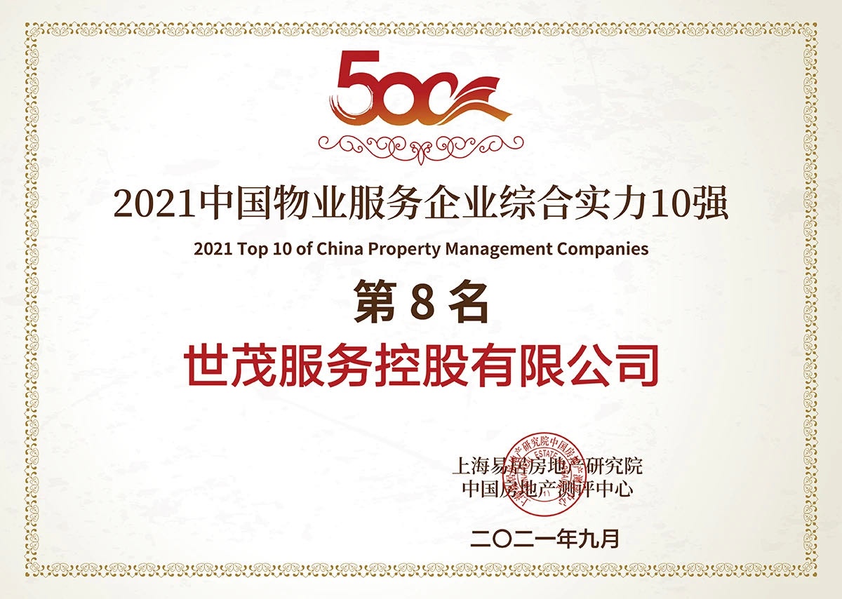 (世茂服务荣获“2021中国物业服务企业综合实力TOP8”)