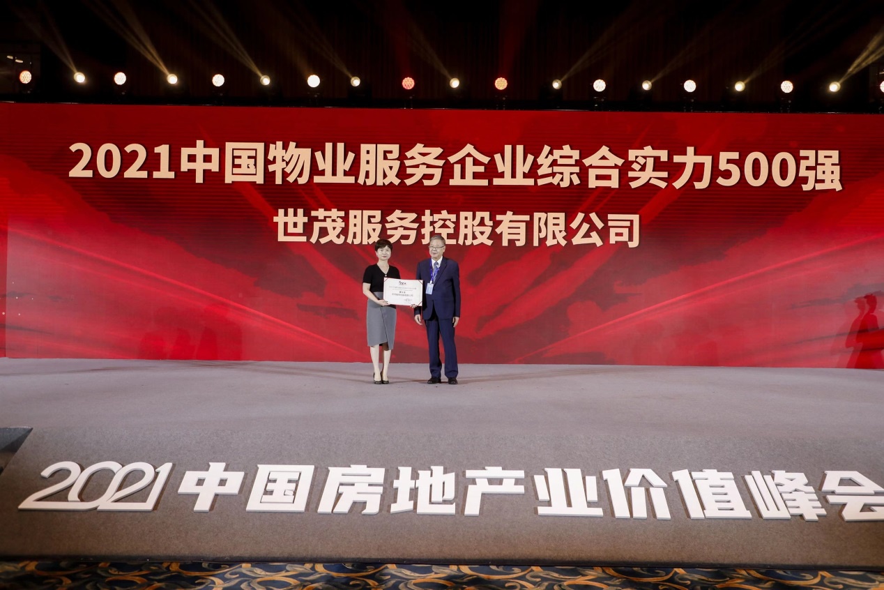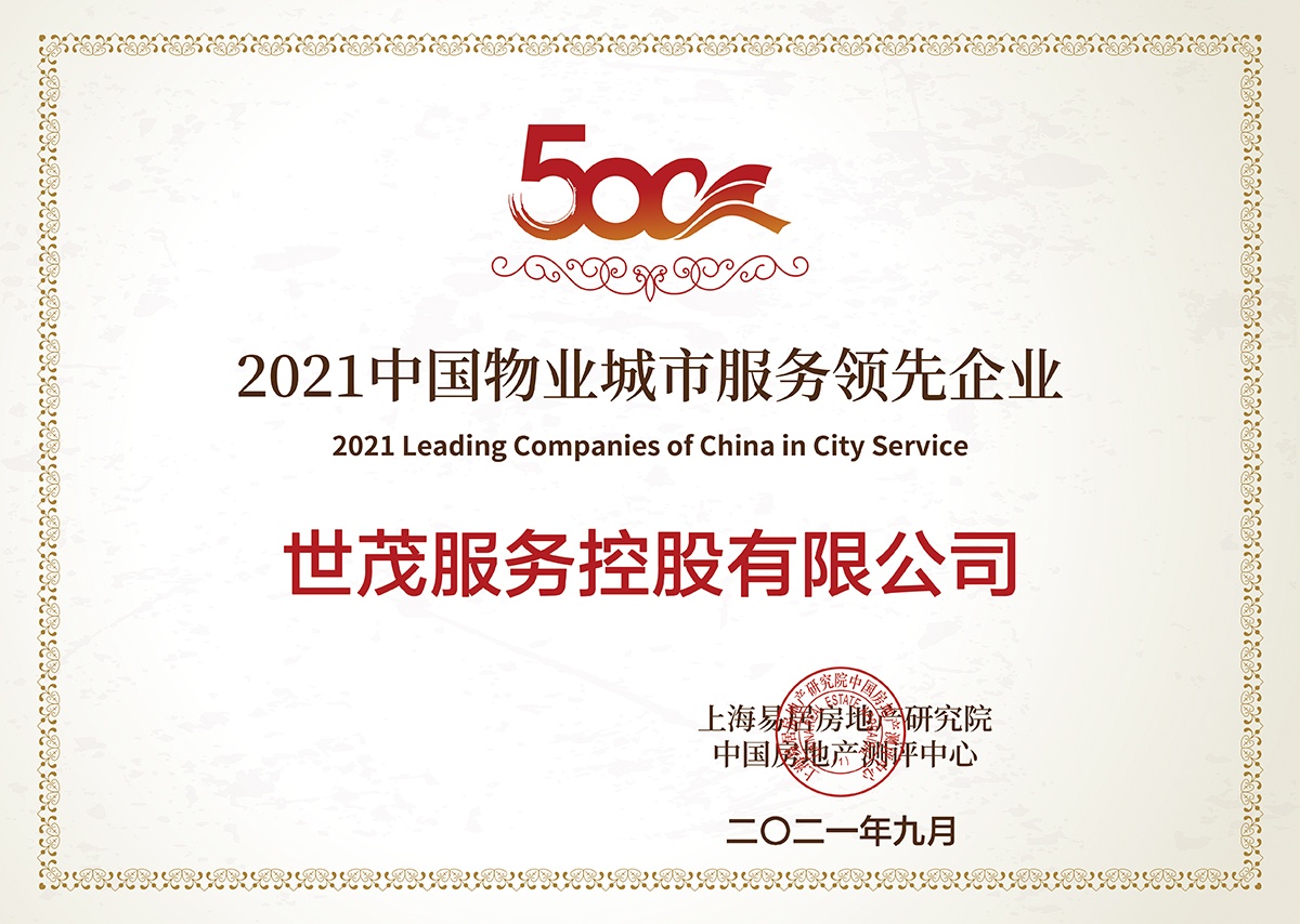 (世茂服务荣获“2021中国物业城市服务领先企业”荣誉称号)