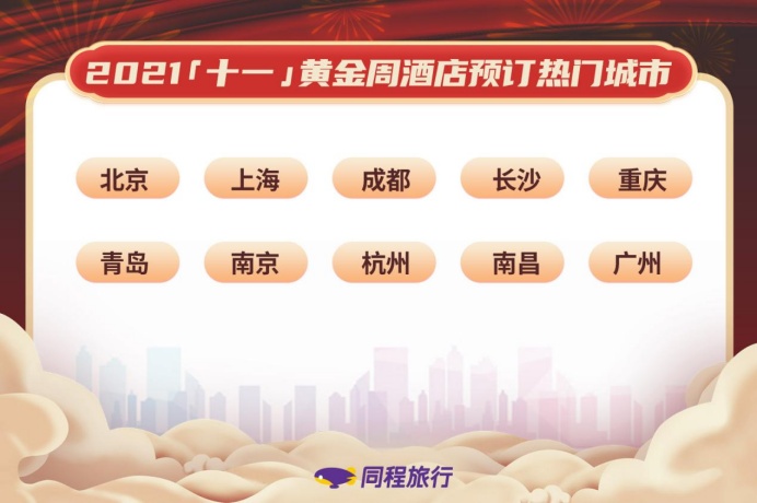 《报告》基于同程旅行住宿大数据的预测显示,国庆假期过夜游客(有过夜住宿需求的游客)主要集中在北京、上海、成都、长沙、重庆、青岛、南京、杭州、南昌、广州等城市,这些城市也将是“十一”期间的热门出游目的地。