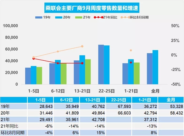 智通财经APP获悉,9月23日,据乘联会数据显示,9月第三周乘用车市场零售达到日均4.3万辆,同比下降14%,表现相对偏弱。今年9月前三周总体同比下降13%,应该是零售走势较平淡的。目前相对于上月的前三周零售增长8%的表现较好。随着国内的疫情防控进入新的平稳阶段,购车需求相对旺盛,经销商的卖车数据月初较强。