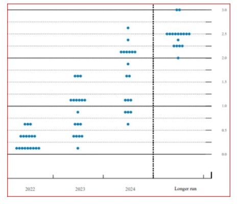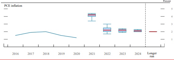 与此同时,点阵图中的通胀预测也表明,FOMC成员认为将通胀在很长一段时间内处于低迷状态。虽然FOMC成员对今年的预测很高,2021年已经过去了四分之三,在这一点上,与其说这是一个预测,不如说是对现实的承认。但从长期来看,他们预计到2024年通胀率将回落至2.1%的低水平,然后稳定在2%。