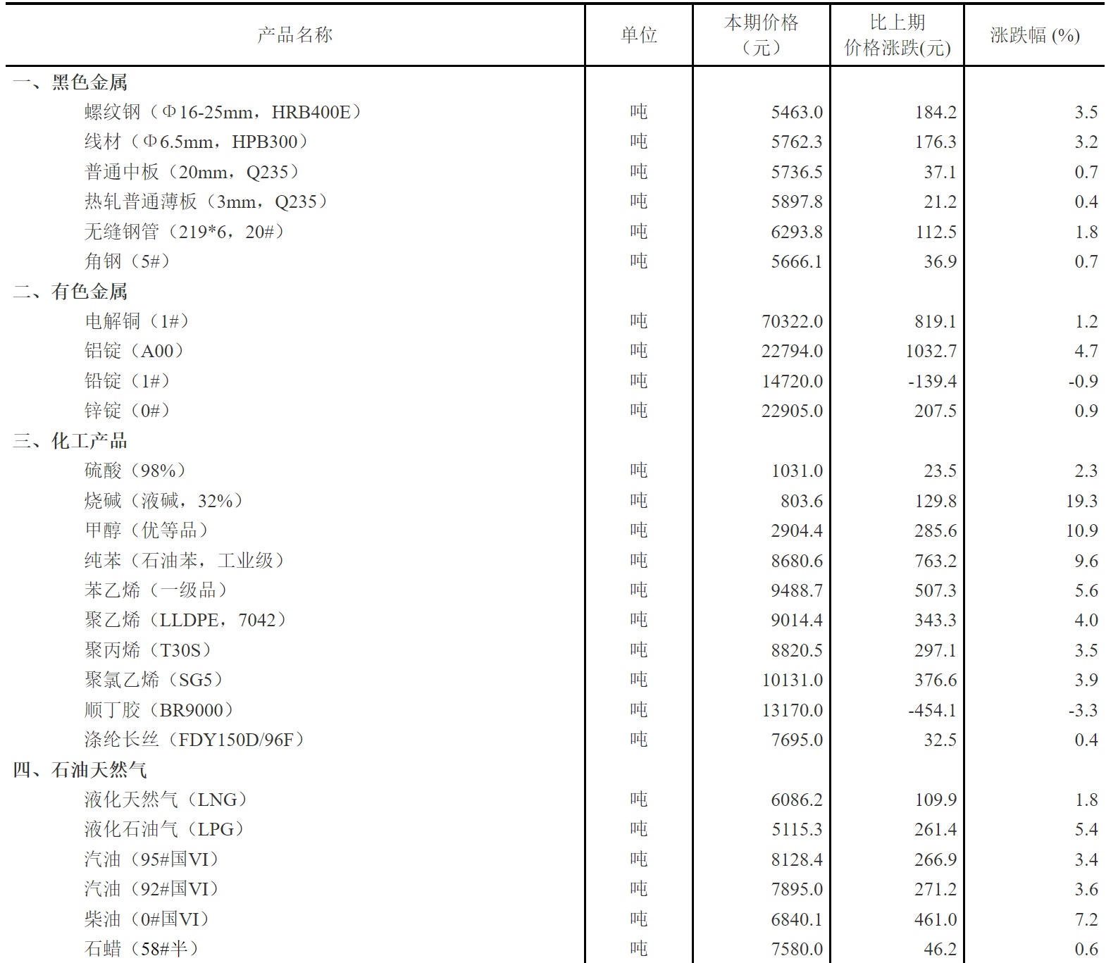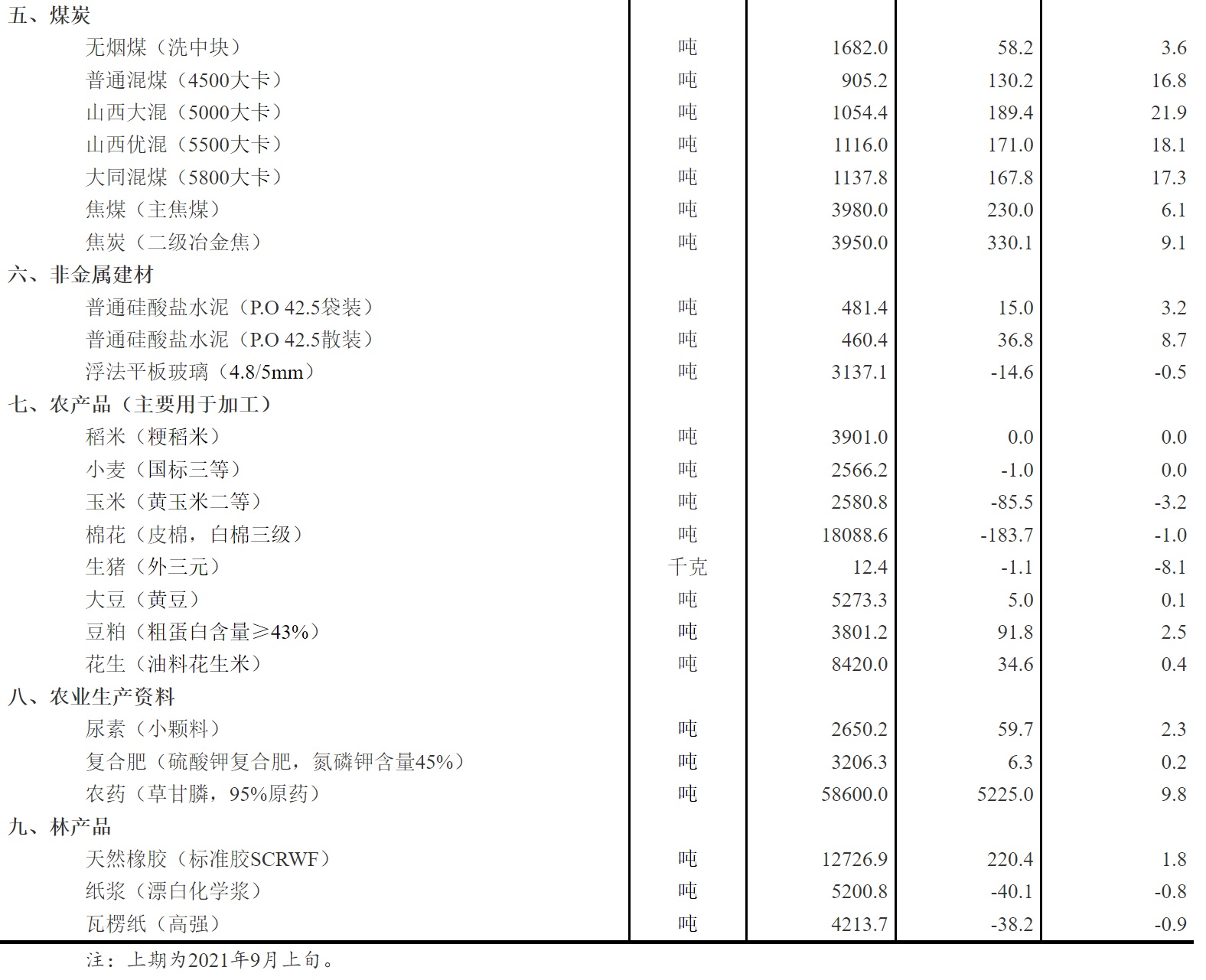 2021年9月中旬流通领域重要生产资料市场价格变动情况