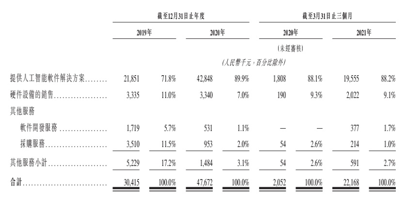 营收规模大幅增长的同时,公司的毛利率也有明显改善,从2019年的53%上升至2021年前三个月止的66.6%,主要得益于核心业务毛利率的大幅提升,同一时期,人工智能软件解决方案的毛利率从46.3%增长至71.3%。毛利率提升,一方面说明公司研发落到实处,另一方面说明随着业务规模扩大,规模经济效应进一步体现。随着公司市场份额进一步扩大,毛利率仍有进一步提升的空间。
