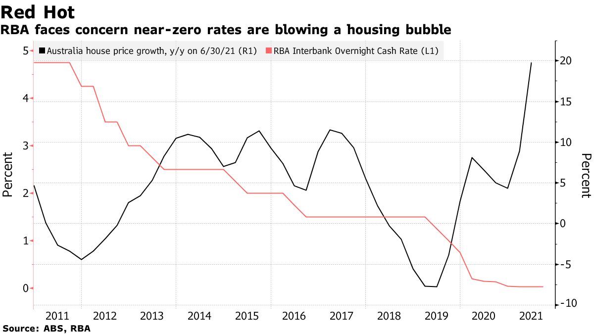 在两天前,澳联储曾表示,他们正在评估是否对高负债率借款人采取适当性限制措施。尽管悉尼和墨尔本等地区因德尔塔变异病毒蔓延加剧而长时间处于封锁状态,但澳大利亚的房价仍在不断飙升,据统计,自去年8月以来澳大利亚房价涨幅已超20%,澳大利亚今年以来的房价涨幅达到18.4%,这是自1989年7月以来的最大涨幅。
