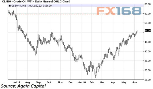 截至北京时间17:46,油价小幅下跌,但美油仍维持在51关口上方,布油维持在52关口上方。