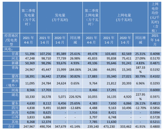 从财务角度分析,根据节能风电(纯风电)的数据来看,2021年1-6月,公司上网电价均价0.48元/kwh,相比于2020年中报的0.4578元/kwh有所提升,因此公司毛利率也从55.73%提升至60.8%。众所周知,风电光伏水电一经建成,成本基本固定,所以多出来的电价全部都是利润。此次绿电价格大涨也不断增厚电企的利润。